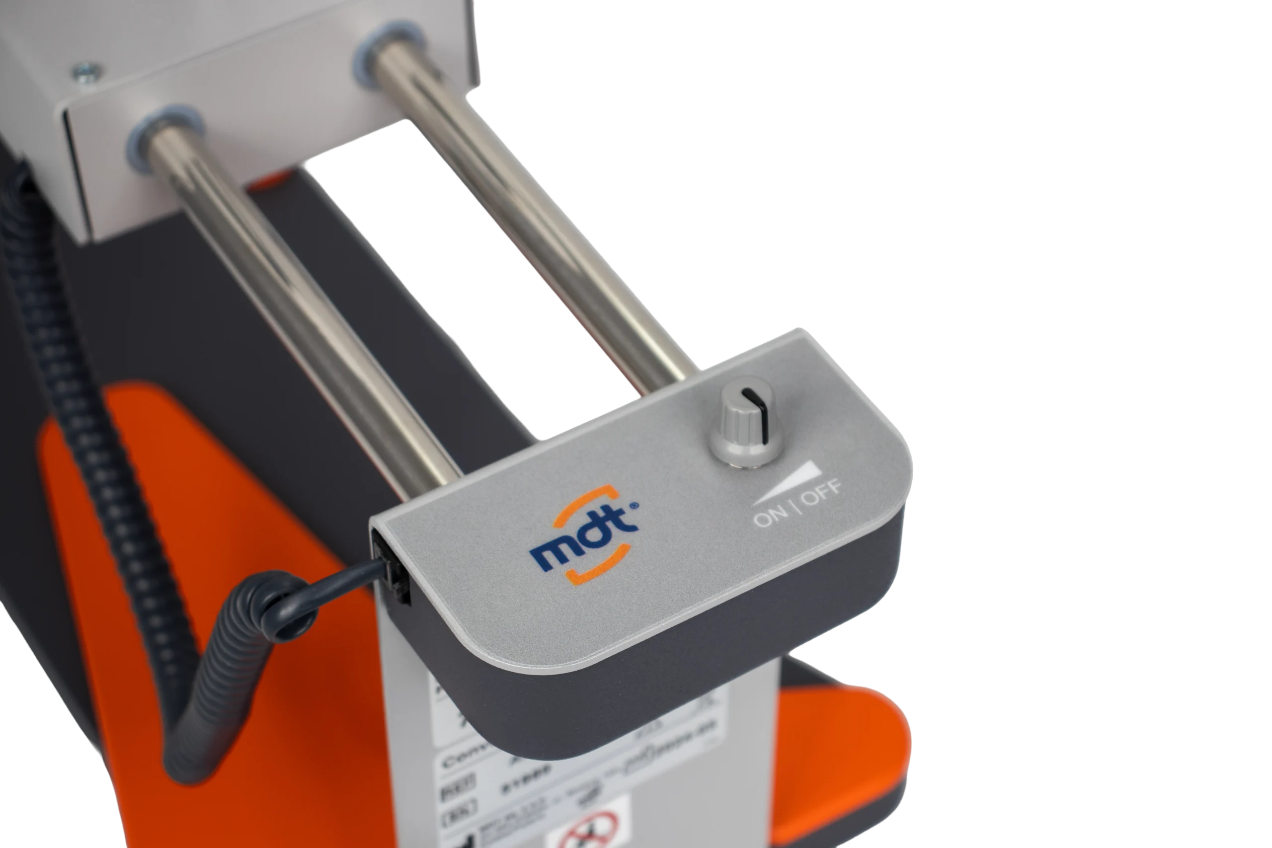 - W dolnej części mechanizmu znajduje się uchwyt do przesuwania tarczy z testem.