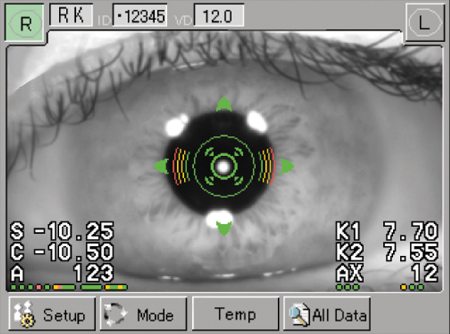 Oprócz standardowej refrakcji, RC-800 dostarcza informacji o centralnych wartościach krzywizny rogówki (K-values) oraz wykonuje pomiary średnicy źrenicy i rogówki.